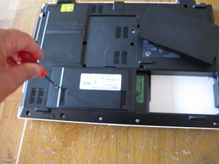 バッテリーを外して,ネジ一本外せばHDDにたどり着ける。ありがたいなぁ。