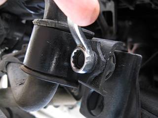 どうも先日から走っている際にからから音がするなぁと思っていたが,オイル交換の際に調べてみるとフロントの左側スタビライザーのブッシュが無くなっていた。