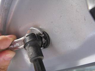 ところが、ゲート側はオープンレンチしか使えない上に、かなりきつく止められていて外れない。
