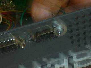 両側にD-SUB9ピンのコネクタがついているが、どちらもケースから外れてしまっている。