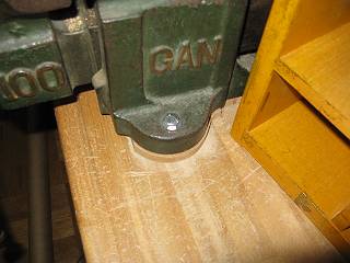 さらに、ベンチバイスも1カ所ボルトが抜けていたので、これも留めた。なかなか普段じゃやりきれないんですよね。