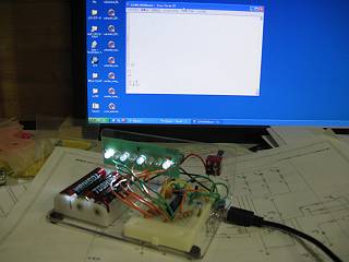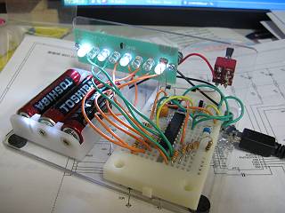 今回はプロトタイプと言うことで、ブレッドボードで製作。朝ご飯で家に帰ったときには半分くらいできていた。