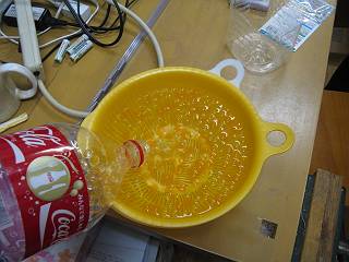 それをペットボトルを切断して作った容器に入れてみたところ。