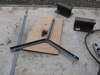 続いて接合。3脚なので120°に開いて押さえつけて溶接する。