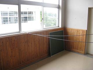 そこで、まずはとにかく広げてから、4階の手すりにひっかけて下へ垂らす。