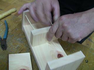 こんな感じで溝をひいて板をはめ込む。生徒用にはのみで加工するように両端+αくらいに溝を入れる予定。