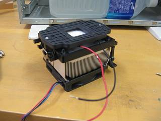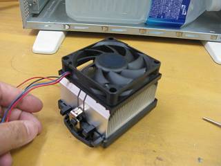 熱くなる方の熱を取り除いてあげないと、使うことはできないので戸棚にとってあったCPUクーラーを出してきた。