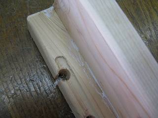 その後、穴ぎりぎりで縦びきをして差し込み用の入り口を切断加工。