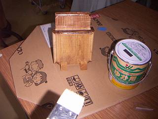トリマで焦がしてしまったので、オスモの濃い色で塗装をする。ボンドがとんでいて塗装が乗らないところがあったりして、御粗末。