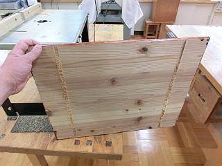 ボンドをつけて、木工プレスにかけて圧着する。これまた贅沢な設備。