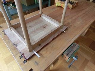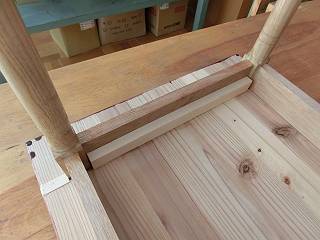 足と天板、少し天板が反ってしまったこともあって、吸い付き桟を入れることにした。
