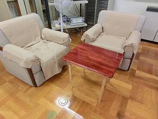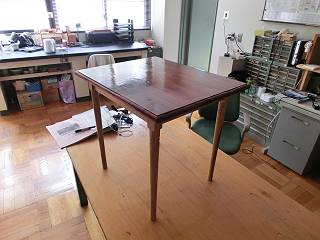 ここのところ少しずつ作ってきた応接用テーブル。ようやく完成した。