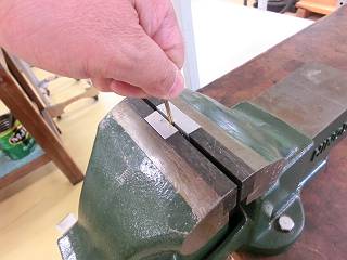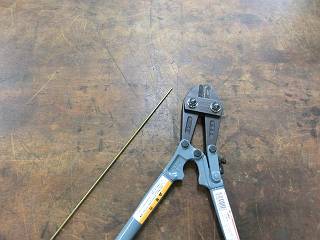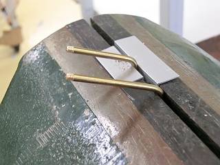 今日は、3mmの真鍮棒でフックを作る。ワイヤーカッターで切断して旋盤加工(端面削りと面取り)。
