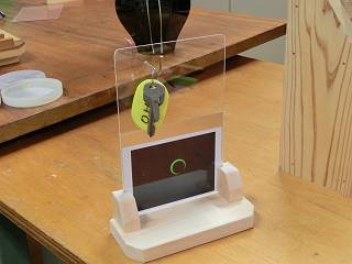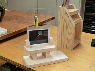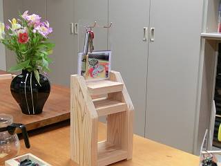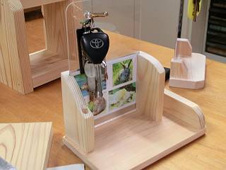 もう一つ、檜で写真立て&キーホルダースタンドを製作。棚にしてみたがちょっと不格好かな。