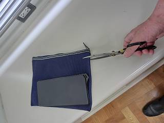 口をゴムで固定するため、かなり大きめに切断。ちょうどジッパーの部分を切り取る感じ。