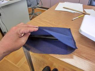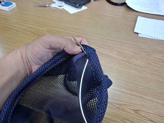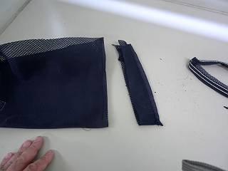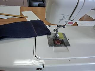 裏返して、ゴム紐を通す。ちょっと左右の縁が高くなってしまったのは御粗末でした。