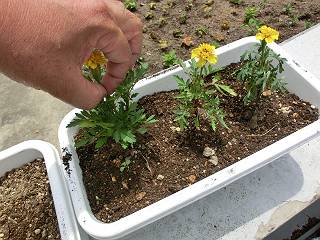 先日、あえなく使われなかった花の苗をどうしようかと考えて、合間を見て少しだけプランターに植えてみた。