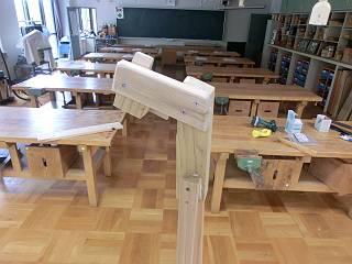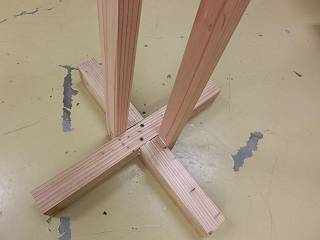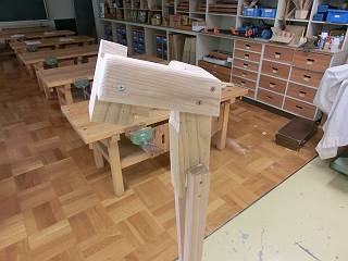 足と同じ厚さの木材をてっぺんに取り付けて台座にする。