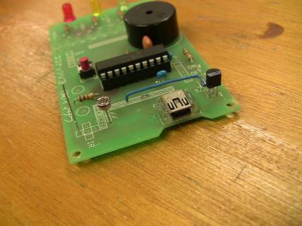 これをココナッツのアナログ変換ポートにつないでみる。ここでは、赤外線センサーを外して代わりに取り付けた。