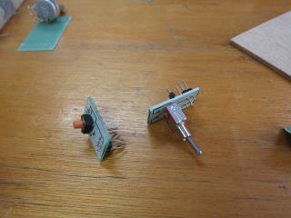 押しボタンスイッチと切り替えスイッチを一つずつにしたが、このはんだづけは時間がかかりそうなので