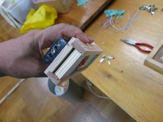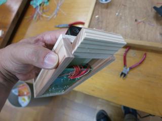 ネオジウム磁石を埋め込んだ木の板を蓋にして完成。