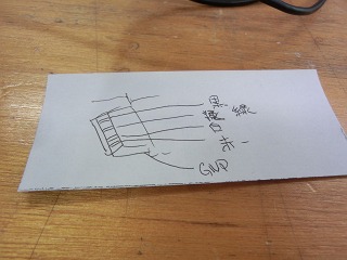 ケーブルを処理した後,テスターでどの色がどの端子に接続されているかを確認する。
