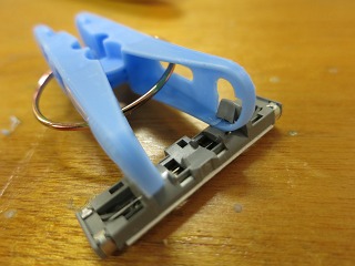 そこで考えたのは,バネがついて手持ちにいくつもある洗濯ばさみ。