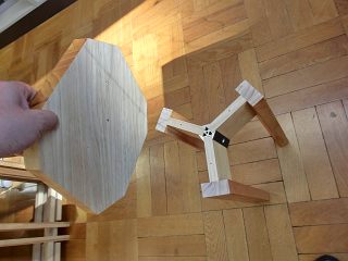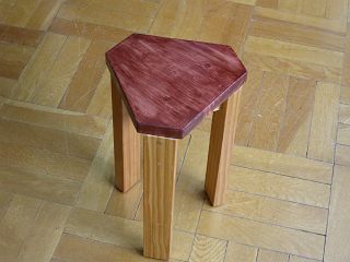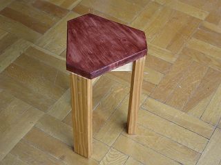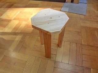 四角い天板に120度の三本足なので,角にすわるとどうしても転んでしまう。