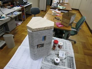 しかし,この形が一番安定する形になると思うけれど,ずいぶん天板を切り落としてしまう。