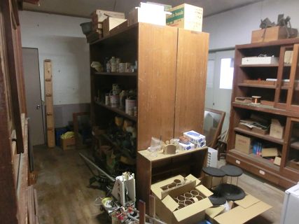 古い技術棟だけれど,金工室・木工室・技準・倉庫があってかなりいい環境。倉庫は開かずの間だったと聞いたが,転任当初の勢いで片付ければ便利に使えそう。
