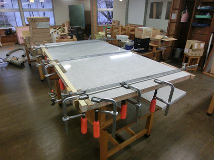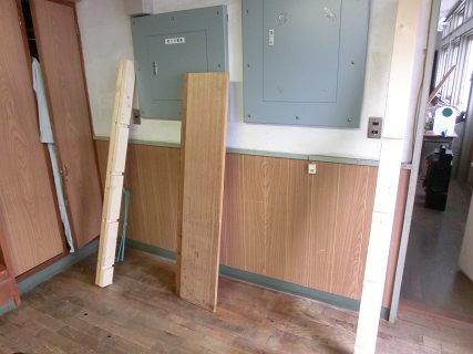 前の学校で職員室を改装した際に,壊した棚から外して取って置いたラワン板を持ち込んだ。