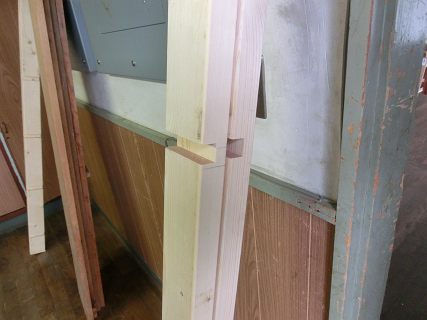 溝にはめ込んで,コーススレッドで留める。(全て自分の材料なので,今度の異動の時は分解して持ち出せるように接着剤は使わなかった)