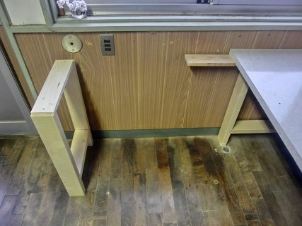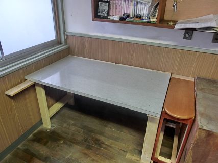 裏側からコーススレッドで天板を固定する。これも簡単に分解できるようにしてある。材の重さが結構あるので,安定したテーブルになった。