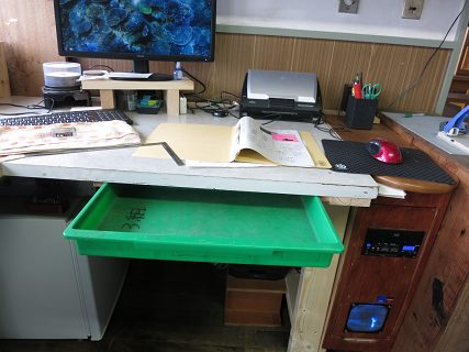 引き出しは卒業生が置いていった教室机用のプラスチックの物を使って,現物あわせで製作。