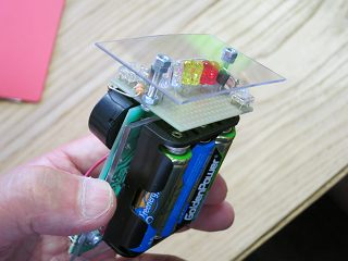 LEDの基板についている穴でLEDの前カバーを付けてみた。