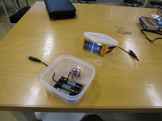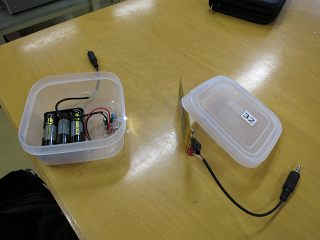 太陽電池を受け側にしてアンプに接続すると、元の音が再生される。光を遮ると音は止まる。
