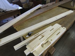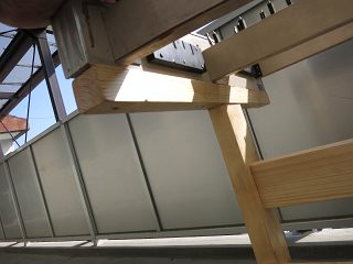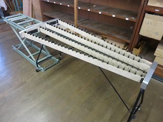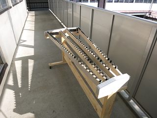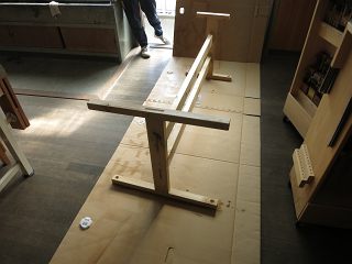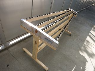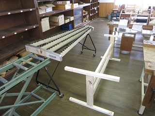 とりあえず、分解状態で木工室へ。高さ調節のできるローラー台は初めて使った。