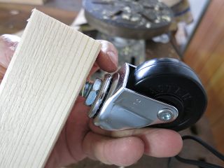 移動のためにキャスターを付ける。50mmの軸付が1つ500円くらいだった。