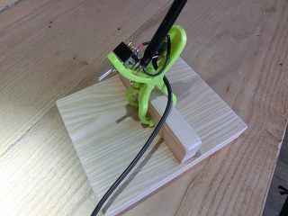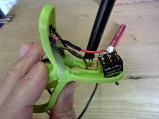 大きな洗濯ばさみにスイッチを付けて、2mmの銅線をネジ止めする。