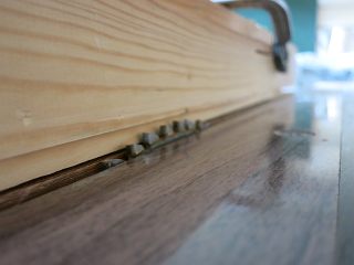 丸鋸はジグを作って、安全に溝が入れられるようにした。