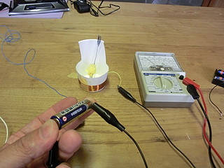 そこで、エナメル線を紙コップに50回巻いてみた。