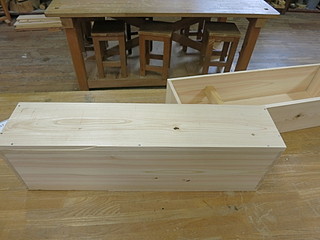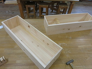 キリの収納箱は既存の木箱に支えの溝付き棒を並べて終了。
