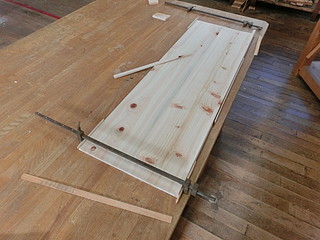 学有林のひのき材を使って作ることにした。上下に溝をつけて挟み込んで留める形にした。