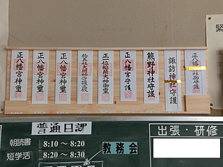 学校としても上納をするので、お札を頂いて職員室の前に掲げてある。