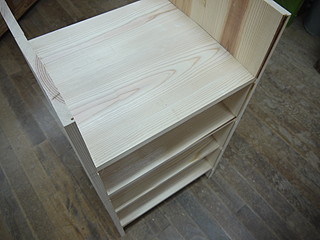 棚も側板に溝を入れてから木工ボンドとコーススレッドで接合した。