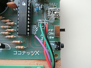 その2つのPIC入力端子から(紫と緑)センサ接続用の信号線を取り出す。