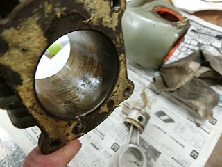 モータがまわらないので、シリンダーを分解したら古いオイルで固まっていた。