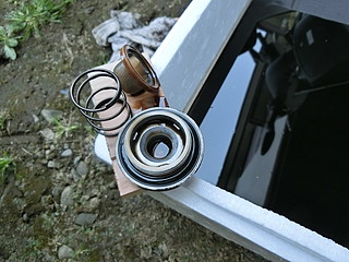 網状のフィルターをスプリングで押しつけている構造になっている。どうやらこれがフィルターらしいです。