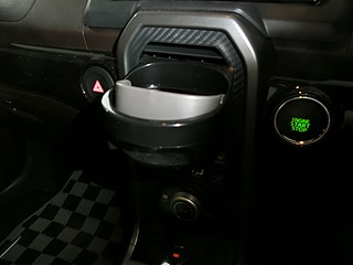 エアコン吹き出し口用のドリンクホルダを買ってみたものの、センターコンソールのパネルが見づらいのでやめた。