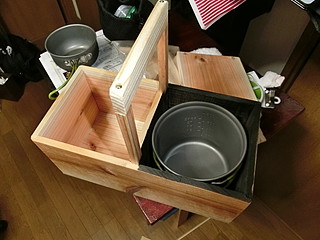 コンロと鍋が大きいので、それが入る大きさで箱を作る。